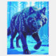 Grand loup de givre noir bleu qui suit à travers un modèle de forêt enneigée.
