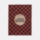 Une couverture d'ouatine comportant une illustration d'un ours se reposant sur une branche d'arbre. L'arrière - plan est plaid noir et rouge de buffle. Personnalisez le nom.
