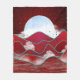 aménagement paysager Abstrait dans différentes nuances de rouge avec une lune, des collines, des arbres, des nuages et des oiseaux.