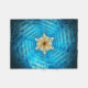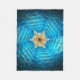 Une étoile fractale de David aux tons bleu et jaune sur un arrière - plan sombre. Ajoutez votre propre texte.