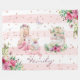 Arrière - plan avec rayures d'aquarelle rose et parties scintillant rose brillante en or. Une belle ballerine tenant un bébé licorne, tandis que la mère de la licorne est à ses côtés.
