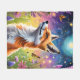 A majestic fox sits in a field of vibrant flowers, gazing up at the sky. Its beautiful red fur shines with white accents, and its pointy ears are alert. Butterflies flutter among the blossoms, surrounded by pink and purple hues. The fox rests gracefully in the long grass, encircled by the colorful flowers.