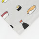 Customisez cette couverture à motif sushi avec la couleur désirée pour l'arrière - plan (par défaut : gris clair). Les illustrations comprennent les nigiri de poisson cru (saumon et thon crus) et les nigiri de tamago (oeuf), les maki de légumes/concombre, le rouleau de maki de l'Alaska et le rouleau de Californie Saumon. Cette couverture à motif sushi artistique est parfaite pour les amateurs de sushi.