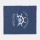 Couverture en polaire bleu et blanc marine avec une barre de navire et des vagues océaniques. Grande décoration pour un propriétaire de yacht ou tout marin. Personnalisez-le en ajoutant votre nom, votre nom de bateau et la ville où vous naviguez.