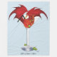 Un mignon petit dragon rouge se dresse jusqu'à une olive verte dans un verre de martini