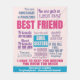 Vous avez un bestie extraordinaire ? Ce fabuleux design rose et bleu regorge de citations et de paroles inspirantes sur les meilleurs amis. Les paroles comprennent "soeurs de l'âme" et "personne ne nous prend comme nous !. La typographie moderne donne une idée cadeau élégante. Ajoutez votre propre message personnel pour customiser avec un message pour votre meilleur ami. Idéal pour un anniversaire entre amis, un message de soutien motivant ou inspirant - ou juste un moyen de célébrer votre amitié.