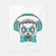 Caractéristiques de conception ce qu'un lémur s'est habillées dans des lunettes turquoises et une cravate d'arc écoutant la musique avec un casque.