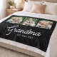 Couverture en molleton personnalisée Mémé établie avec 3 photos et une typographie élégante et moderne. Un cadeau significatif et sincère pour votre grand-mère, mettant en valeur 3 photos de famille préférées et les années où elle est devenue grand-mère.