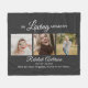 Confort, chaleur et souvenirs affectueux, le tout emballé dans un seul. Découvrez la couverture mémoriale funéraire unique et élégante. Un souvenir vraiment spécial, cette couverture vous permet d'immortaliser vos souvenirs chéris avec l'inclusion de trois photos, de texte personnalisé et d'un message personnel. Rendez-le vraiment vôtre ou faites-en un cadeau attentionné pour un être cher qui éprouve une perte en personnalisant les styles de police, la taille, la couleur et l'arrière-plan.