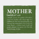 Mère, nom : une mère, la personne qui élève, nourrit, enseigne et encourage ses enfants, une personne qui aime sans condition, une personne qui donne, attentionné, gentil, un guérisseur du coeur et un gardien secret, une femme très aimée et grandement admirée, une personne qui fait l'oeuvre de vingt... gratuitement.