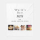 Faites votre propre collage photo de famille unique. Utilisez quatre, 4 de vos photos préférées de votre mère, de ses enfants, de sa famille, de vos amis ou de votre animal de compagnie! Avec le texte : World's Best Mom. Personnalisez et ajoutez vos noms. Moderne, féminine et glamour avec élégante arrière - plan blanche, texte noir. Parfait comme cadeau d'anniversaire, de Noël ou de fête des mères. Cette couverture est également disponible dans notre magasin avec un arrière - plan noir.