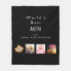 Faites votre propre collage photo de famille unique. Utilisez quatre, 4 de vos photos préférées de votre mère, de ses enfants, de sa famille, de vos amis ou de votre animal de compagnie! Avec le texte : World's Best Mom. Personnalisez et ajoutez vos noms. Moderne, féminine et glamour avec élégant noir, arrière - plan. Parfait comme cadeau d'anniversaire, de Noël ou de fête des mères.