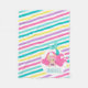Le design présente une mignonne princesse de sirène rose sur un arrière - plan rayé turquoise bleu jaune rose violet en diagonale. Customisez-le avec votre nom.