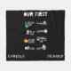 Cute et moderne noir jalon couverture bébé, parfait pour prendre des photos de votre bébé jumeaux dans leurs premiers jours fériés importants. Cette couverture contient la mention "Notre premier" en haut, en lettres blanches. Au milieu de la couverture, il y a 8 jours fériés principaux, chacun avec une petite icône ludique et colorée (st. Patrick's Day avec un trèfle à quatre feuilles, 4 juillet avec un casquette "étoiles et rayures", Thanksgiving avec un citrouille, Pâques avec de mignonnes oreilles lapins, Noël avec le casquette Père Noël, Anniversaire avec un beau gâteau, Saint Valentin avec sa flèche et coeur, avec un fantôme amusant). Il peut être personnalisé avec les noms du bébé dans une police manuscrite blanche. Un cadeau parfait pour les baby showers ou pour les nouveau-nés et les nouveaux parents.