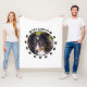 Conception de modèle de photo d'animal de compagnie personnalisable par Destei avec des empreintes de pattes de chien sur les bords et une zone de texte personnalisable en haut. La photo est placée au milieu dans une forme ronde avec une fine bordure noire. Vous pouvez changer la couleur des empreintes de pattes et du texte en n'importe quelle autre couleur, si vous le souhaitez.