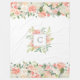 Cette couverture féminine présente de belles bordures florales avec des roses d'aquarelle, des pivoines et des fleurs d'hydrangée dans des tons de pêche, rose et blanc cassé avec des feuilles mixtes et de la verdure. Un cadre fleuri carré entoure le monogramme au centre du design. Modifiez ce texte avec votre monogramme ou vous pouvez supprimer les éléments monogrammes si vous préférez la couverture sans monogramme.