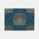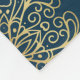 Un motif de belles mandalas d'or répété dans un motif damassé orné. L'or est brillant pour imiter la vraie feuille d'or. Les mandalas sont conçus avec des travaux de ligne tracés à la main et placés sur un arrière - plan bleu marine profond.