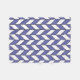 Cette couverture en toison présente un design élégant en chevron avec un motif géométrique en fer à épines dans un périwinkle tendance et blanc avec des lignes noires.