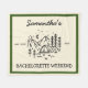 une couverture de bachelorette de camp simple et personnalisée en vert neutre et blanc avec une tente dans la forêt est parfait comme toile de fond photo de la fête de bachelorette. Célébrez votre douche nuptiale avec le thème parfait du week-end de camping, le thème parfait pour la nostalgique mariée vintage les années 70 et ses demoiselles d'honneur.