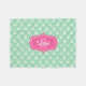 Empreintes de pattes de chien mignons motif sur une couleur arrière - plan vert menthe. Au milieu, il y a un badge rose avec un monogramme et un nom personnalisables.