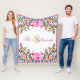 Boho Fleece Blanche avec monogramme fleuri / feuillage. Branche Whimsical с colorée avec des fleurs violettes, bleues, roses, dorées, feuilles vertes et hibiscus roses. Monogramme doré + nom pourpre. Bordure violette. Un grand cadeau personnalisé.