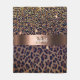 Elégante, glamour et féminine, avec motif léopard brun, doré et noir, décorée de confettis dorés. Modèle pour votre nom. Un faux groupe de couleur bronze. Ajoutez votre nom et lettre monogramme, texte noir et blanc.