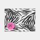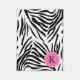 Couverture en molleton noir et blanc à motif zèbre monogrammé. Un bandeau rose chaud et un cercle rose chaud où vous pouvez mettre votre initiale.