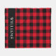 La couverture de motif de contrôle de buffle rouge et noir de ce style de bûcheron a une bande noire sur le fond avec un nom de famille en texte blanc. Personnalisez avec votre propre nom ou pour donner comme cadeau.