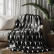 Couverture Polaire Motif Art Déco Blanc Sur Fond Noir