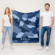 Cette confortable couverture en toison motif camouflage vous gardera au chaud pendant les nuits fraîches. Le motif de camo a des nuances de bleu marine, bleu pâle et bleu moyen.De l'autre côté du bas sur une bande bleu marine est votre nom dans la typographie de pochoir bleu pâle pour vous de personnaliser. Conçu par l'artiste ©Susan Coffey.