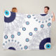 Couverture blanche moderne imprimé avec bleu marine grec, turquoise et blanc nazar symbole oeil symbole mal mandalas