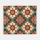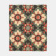 Cette oeuvre présente un motif médaillon complexe aux motifs symétriques fleuris et géométriques. Le design est riche en détails, mettant en valeur des formes entrelacées dans une palette de couleurs harmonieuses de rouges chauds, de crèmes douces et de verts muets contre un arrière - plan noir profond. L'agencement répétitif et équilibré des éléments crée un sens de l'ordre et de l'élégance, rappelant les motifs classiques de tuiles et d'oeuvres d'art ornementales. La combinaison de couleurs audacieuses et de motifs complexes ajoute profondeur et intérêt visuel à la composition globale.