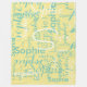 Ajoutez votre propre nom au modèle pour créer un motif bleu et jaune pâle transparent. Noms dans différents styles de police
