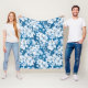Couverture Polaire motif, fleurs blanches, arrière - plan bleu,