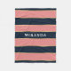 Des rayures modernes élégantes, féminines et audacieuses, roses et bleu marine, séparées par de petites rayures dorées. Un modèle de nom personnalisable est présenté au-dessus du motif. Un cadeau personnalisé mignon avec une touche féminine.