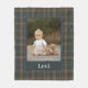 Couverture pour garçon avec un En vichy classique gris et marron ou motif plaid. Personnalisé avec son nom et une photo. Le dos a une couleur gris solide. Idéal pour un anniversaire ou pour Noël.