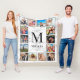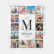 Créez votre propre couverture en toison de collage photo personnalisée de 12 avec vos images personnalisées, monogramme et nom sur un élégant arrière - plan en marbre blanc élégant.