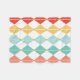 Un motif sans soudure avec un design classique en diamant arlequin dans une palette de couleurs rétro rouge, jaune, turquoise et corail. Chaque forme de diamant est entrecoupée de lignes blanches avec de petits points dorés à chaque intersection, ajoutant une touche ludique et vintage. L'agencement géométrique audacieux et les couleurs chaudes évoquent une esthétique nostalgique du milieu du siècle.