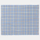 Cette couverture en toison est décorée d'un motif couleur tartan (plaid) aux couleurs blanc, bleu et taupe (gris-brunâtre).