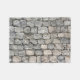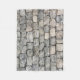 Contraste surprenant d'une couverture molle en toison avec l'impression photo d'un mur en pierre sèche.
