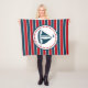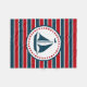 Design nautique avec décoration de voilier en forme ronde avec étoiles sur rouge, bleu et blanc rayé arrière - plan