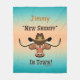 Personnalisez le nouveau shérif du Petit Cowboy "One of a Kind" de Town Fleece Blanket ! Il présente un comique Longhorn Steer portant un Casquette Western Sheriff's Brown avec une Big Gold Sheriff's Star, entouré par les mots...."New Sheriff In Town" sur un Arrière - plan Turquoise et Orange ! La couverture de ce petit garçon a un Coussin correspondant et un panneau de porte ! Design Original Par L'Artiste Kerry Miller !