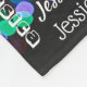 La photo nommée personnalisée d'arrière - plan de thème de vacances de couverture de Noël d'art de souterrain du bokeh lumineux et multicolore de Noël s'allume en vert bleu, orange, rouge, pourpre, et turquoise sur l'arrière - plan noir. Copie sur toute la surface de typographie du nom personnalisé dans plusieurs différents styles blancs de lettrage. Cadeau mignon de baby shower de Noël ou cadeau de Noël pour une fille de l'adolescence.