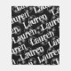 Célébrez votre joueur ou passionné de football favori avec cette couverture de football en toison personnalisée. Un motif de balles de football partout sur un arrière - plan noir a préparé le terrain pour un nom personnel. Ça fait un grand cadeau ! Créé par Simply Farmhouse Press.