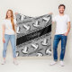 Cette jolie couverture polaire à thème volleyball pour filles présente l'image réaliste d'un volleyball qui a des panneaux noirs, gris et blancs modélisés à un angle avec la police sportive phrase de texte "I love volleyball" en noir qui s'étend entre les rangées anglisées de volleyballs - les panneaux noirs et gris des volleyballs sont mélangés avec un motif kaleidoscopique girly une apparence textuelle - personnalisez son nom dans une police manuscrite sophistiquée sur une bande de couleur noire en rondelle pleine largeur - l'arrière - plan est personnalisable gris - par katz_d_zynes
