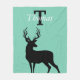Oh Deer ! Cette couverture en toison moderne et rustique est un must pour les amateurs de plein air de votre famille ! La silhouette de cerf noir se distingue par son arrière - plan turquoise vert clair. Personnalisez cette couverture molle en polaire chaude avec votre lettre monogramme et votre superposition de texte personnalisé blanc.