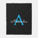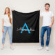 Couverture en fleece à monogramme en écriture factice bleu et noir. C'est le cadeau parfait pour un anniversaire sweet 16, un mariage, une fête de mariage, un anniversaire, une baby shower ou une soirée bachelorette pour quelqu'un qui aime le luxe glamour et les styles chics.