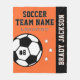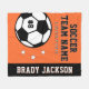Une couverture en toison personnalisée sur le thème du football pour les joueurs de football quand ils ne marquent pas de buts sur le terrain, et pour leurs parents de soutenir leurs enfants et rester chauds à des jeux frais! Fait un cadeau d'équipe unique pour les tournois de voyage. Le design comprend un ballon de football customisé avec le numéro d'uniforme du joueur, un texte personnalisé pour le prénom et le nom du joueur et un texte moderne pour le nom de l'équipe du club de football. Le design élégant et moderne présente des lettrages jersey de variété sportive et des rayures horizontales simples avec des accents étoiles. Le jeu de couleurs orange, noir et blanc peut être modifié pour correspondre aux couleurs de votre équipe.