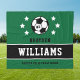Une couverture en toison personnalisée sur le thème du football pour les joueurs de football quand ils ne marquent pas de buts sur le terrain, et pour leurs parents de soutenir leurs enfants et rester chauds à des jeux frais! Fait un cadeau d'équipe unique pour les tournois de voyage. Le design comprend un ballon de football customisé avec le numéro d'uniforme du joueur, un texte personnalisé pour le prénom et le nom du joueur et un texte moderne pour le nom de l'équipe du club de football. Le design élégant et moderne présente des lettrages jersey de variété sportive et des rayures horizontales simples avec des accents étoiles. Le jeu de couleurs vert foncé, noir et blanc peut être modifié pour correspondre aux couleurs de votre équipe.