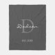 Confort confortable avec une nouvelle couverture chaleureuse et moderne. Le côté avant est conçu avec un arrière - plan noir personnalisable et un gros monogramme gris initial. Votre nom de famille est en blanc élégant script lettering sur le centre et l'année établie est sur la partie inférieure. Cliquez sur l'option Personnaliser le modèle et suivez les invites. Cela fait aussi une idée de cadeau parfait pour une personne avec une nouvelle maison.